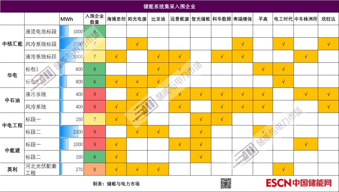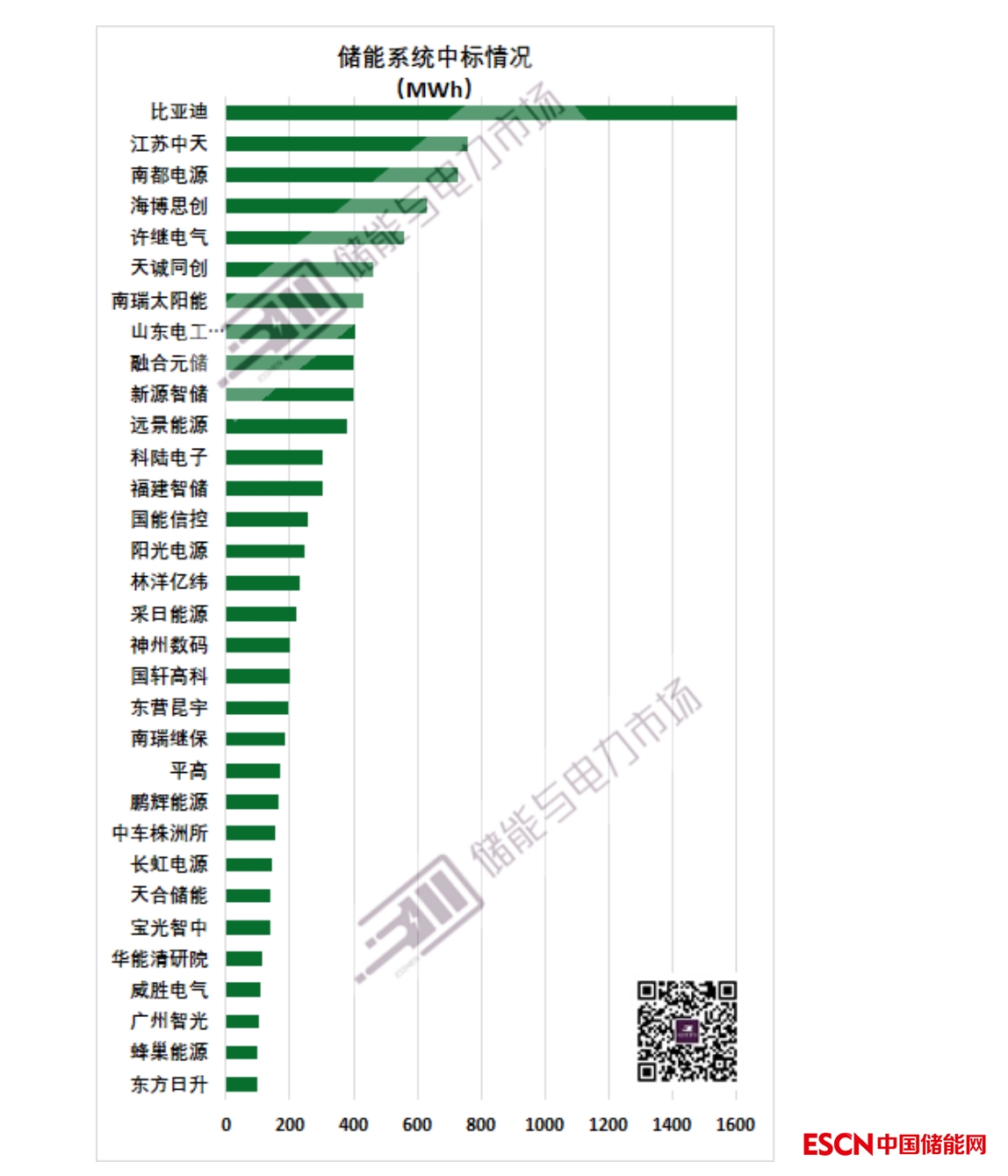 儲(chǔ)能項(xiàng)目中標(biāo): 比亞迪規(guī)模遙遙領(lǐng)先, 許繼電氣數(shù)量最多