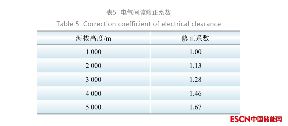 逆變器作為將光伏組件所發(fā)直流電轉(zhuǎn)化為電網(wǎng)所需交流電的核心設(shè)備,影響著整個(gè)光伏電站輸出功率與輸出電能質(zhì)量。大氣壓力、空氣密度和濕度隨海拔升高而逐漸降低,進(jìn)而會(huì)導(dǎo)致電氣設(shè)備絕緣強(qiáng)度和散熱性能下降。海拔在5 000 m范圍內(nèi),每上升1 000 m,平均氣壓下降7.7~10.5 kPa,電氣設(shè)備外絕緣強(qiáng)度下降8%~13%,溫升增加3%~10%,環(huán)境溫度降低6 ℃;以海拔1000 m為基準(zhǔn),為保證電氣設(shè)備在高海拔地區(qū)安全使用,須對(duì)其電氣間隙按照表5所示系數(shù)進(jìn)行修正[19]。