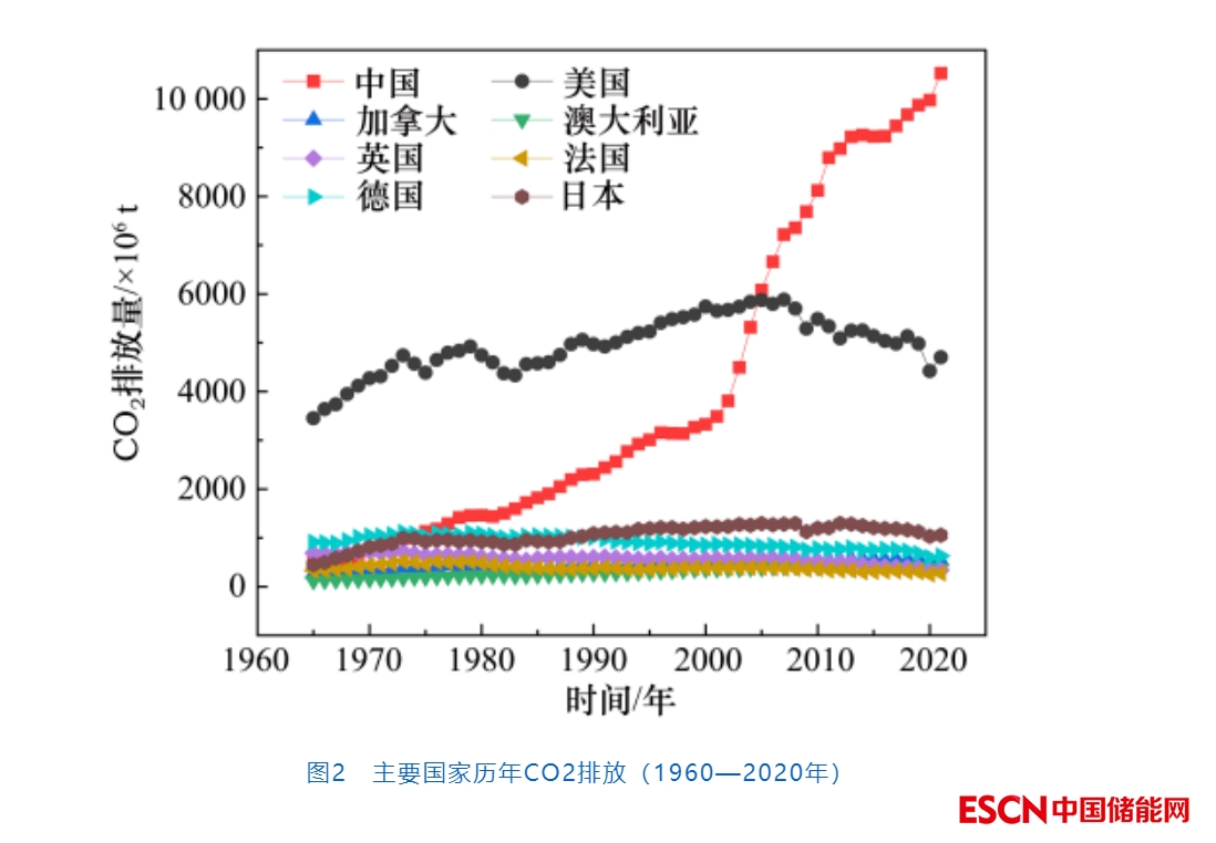 能源活動引起的CO2排放被認(rèn)為是導(dǎo)致全球氣候變暖的主要原因。據(jù)統(tǒng)計(jì),2021年全球共排放CO2約3.898×1010 t,其中能源相關(guān)的CO2排放約3.388×1010 t,占排放總量的86.9%。我國2021年CO2排放總量約為1.204×1010 t,其中能源活動引起的CO2排放為1.052×1010 t。電力和工業(yè)部門是我國CO2排放的主體,合計(jì)占據(jù)能源相關(guān)CO2排放的77%。