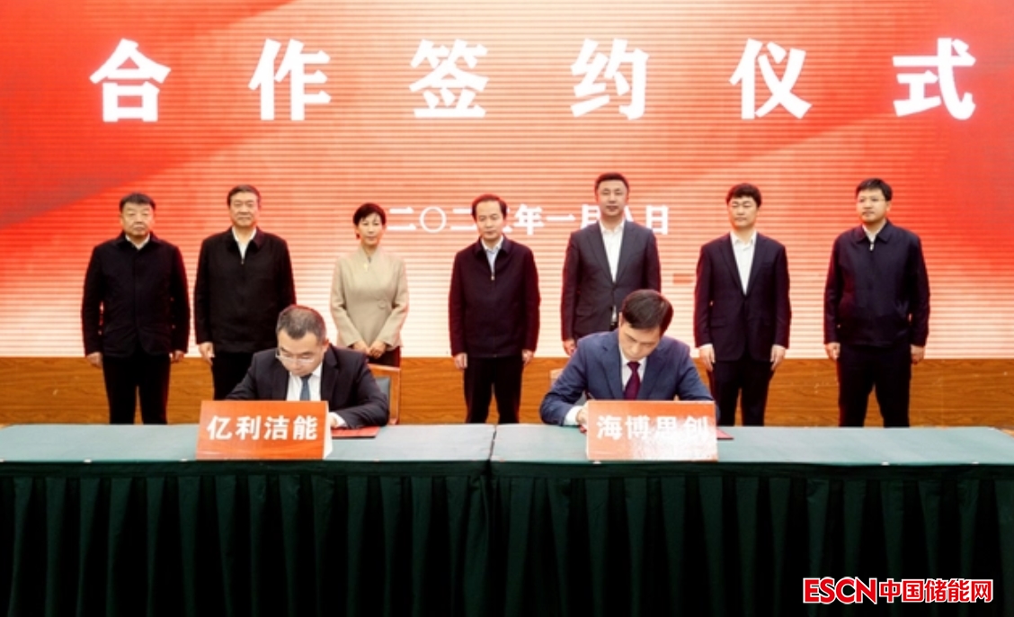 1月8日,在國家“十四五”新能源大基地建設(shè)重鎮(zhèn)之一鄂爾多斯,億利潔能(600277)與儲能翹楚海博思創(chuàng)簽署《合作協(xié)議》,雙方將成立由億利潔能控股50.5%、海博思創(chuàng)占股49.5%的合資公司,在電化學(xué)儲能整站集成、項目建設(shè)運(yùn)維和電網(wǎng)服務(wù)技術(shù)以及物理儲能研發(fā)等方面開展合作,電化學(xué)儲能裝備設(shè)計產(chǎn)能10GWh/年以上,并開啟換電重卡和大工業(yè)園區(qū)用電側(cè)儲能新業(yè)態(tài),打造沙戈荒儲能系統(tǒng)綜合服務(wù)商,為國家沙戈荒新能源大基地產(chǎn)業(yè)鏈提供戰(zhàn)略支撐。鄂爾多斯市市長杜匯良、億利資源集團(tuán)董事長王文彪、海博思創(chuàng)董事長張劍輝等出席簽約活動。在簽約活動之前,杜匯良會見了王文彪和張劍輝并座談。