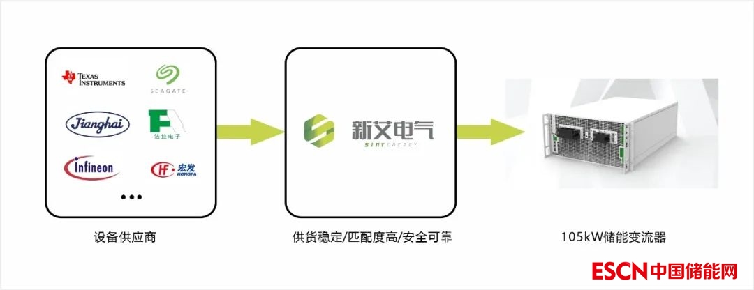 新艾105kW儲能變流器內(nèi)部元器件全采購鏈由新艾可靠供貨商伙伴提供,供貨穩(wěn)定、匹配度高、安全可靠,產(chǎn)品一站式集成。