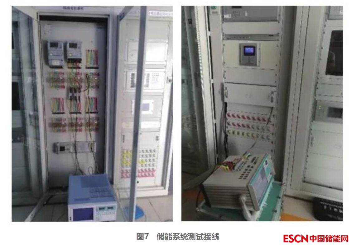 基于功率型儲能電站的控制方式、設(shè)備選型和參數(shù)確定,對該電站動態(tài)響應(yīng)性能和過載能力進行了測試驗證。儲能系統(tǒng)測試點在35 kV出線側(cè),如圖6所示。功率分析儀在PT、CT二次側(cè)接入,用于記錄測試過程中的功率和充放電電量。測試儀器主要包含功率分析儀(橫河,WT1804E)和示波器(安捷倫,DSO-X 2024A),部分測試現(xiàn)場接線如圖7所示。