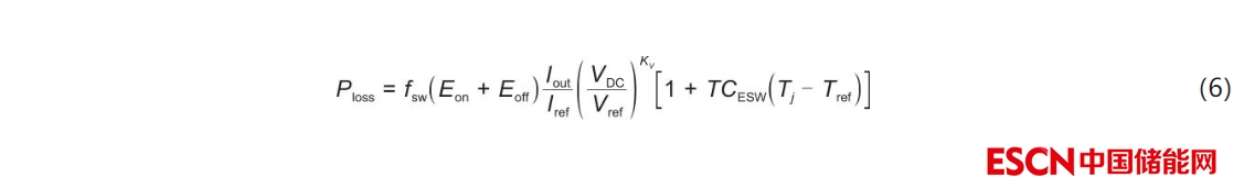 式中,圖片為開關(guān)頻率,圖片和圖片分別為開通和關(guān)斷損耗,圖片、圖片、圖片為計算時給定參考電流、電壓及溫度,圖片為逆變輸出電流,圖片為功率器件直流母線電壓,圖片為功率器件結(jié)溫,圖片為開關(guān)損耗電壓關(guān)系參數(shù),圖片為開關(guān)損耗溫度系數(shù)。