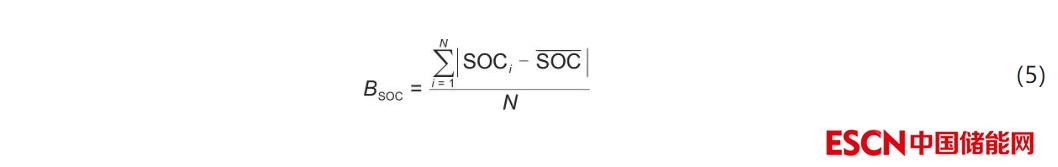 式中,圖片為第i個模塊的SOC狀態(tài)值,圖片為整站SOC狀態(tài)均值或該站設(shè)定SOC期望值,圖片為SOC差值,圖片為第i個模塊輸出功率值,圖片為需求功率值。根據(jù)式(5)計算策略SOC均衡效果。
