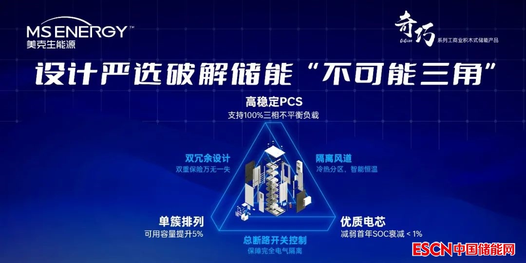 發(fā)布會上,美克生能源全新工商業(yè)積木式儲能產(chǎn)品——奇巧系列正式發(fā)布,為工商業(yè)企業(yè)優(yōu)化用能成本,打造零碳工廠,實現(xiàn)低碳發(fā)展和能源轉型提供解決方案。奇巧出自“守正出奇,神工天巧”,寓意奇巧產(chǎn)品更智能且出眾的配置,更緊湊而巧妙的內(nèi)部設計。