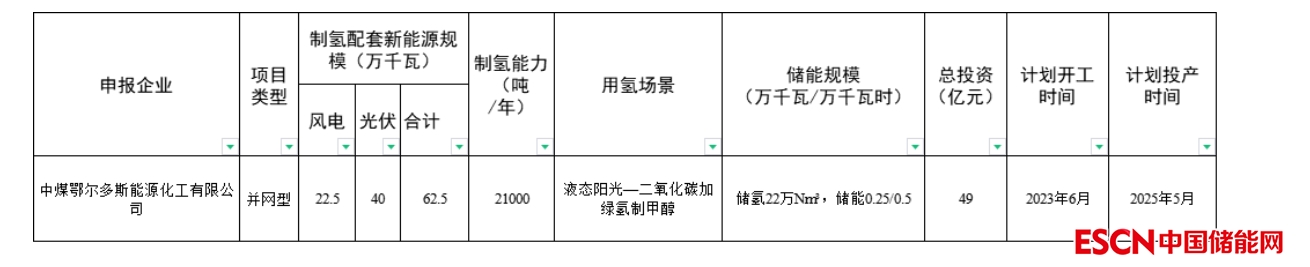 清單中包含:中煤鄂爾多斯能源化工有限公司10萬(wàn)噸/年液態(tài)陽(yáng)光——二氧化碳加綠氫制甲醇技術(shù)示范項(xiàng)目
