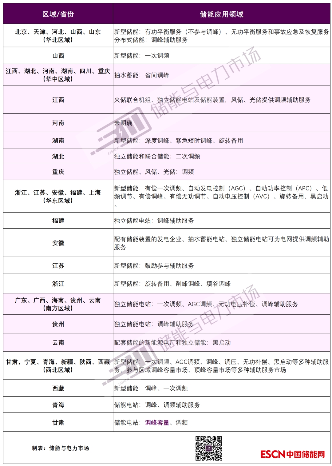 2022年各地電力輔助服務(wù)政策中對于儲能應(yīng)用的相關(guān)說明如下表所示。