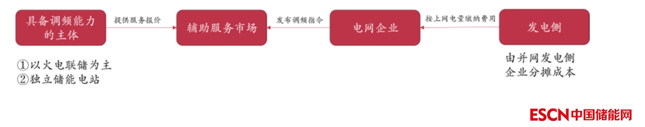 南方電網(wǎng)調(diào)頻服務(wù)市場(chǎng)交易模式:所有上網(wǎng)主體均要按照上網(wǎng)電量繳納調(diào)頻費(fèi),形成資金池;電站投資方通過與火電廠簽訂合約的方式在火電廠旁建設(shè)儲(chǔ)能調(diào)頻電站。根據(jù)提供的調(diào)頻服務(wù),電網(wǎng)從將資金池中資金以調(diào)頻補(bǔ)貼方式給予電站,隨后電廠與電站分成。