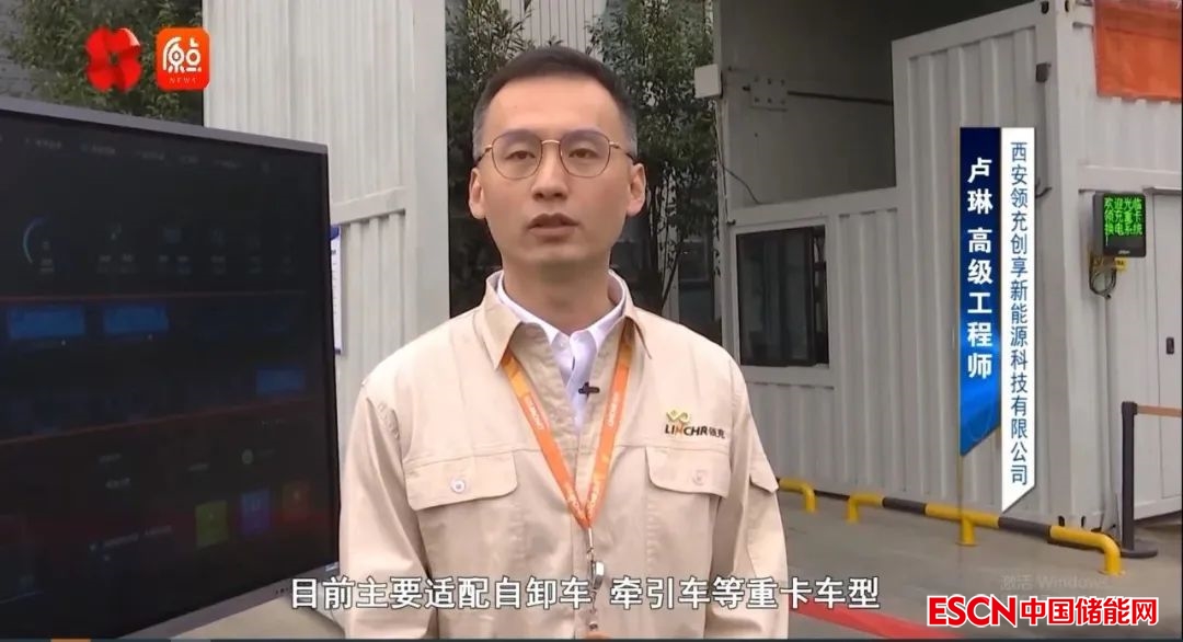 領(lǐng)充高級(jí)工程師盧琳,為記者實(shí)地演示講解了重卡換電過(guò)程。
