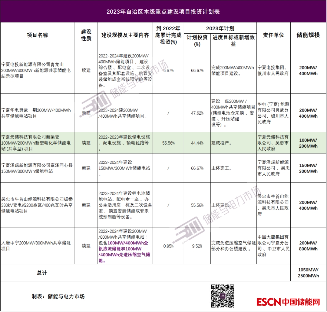 寧夏元儲科技有限公司新梁變100MW/200MWh新型電化學(xué)儲能電站 (共享型) 項目計劃于2023年建成投產(chǎn)。