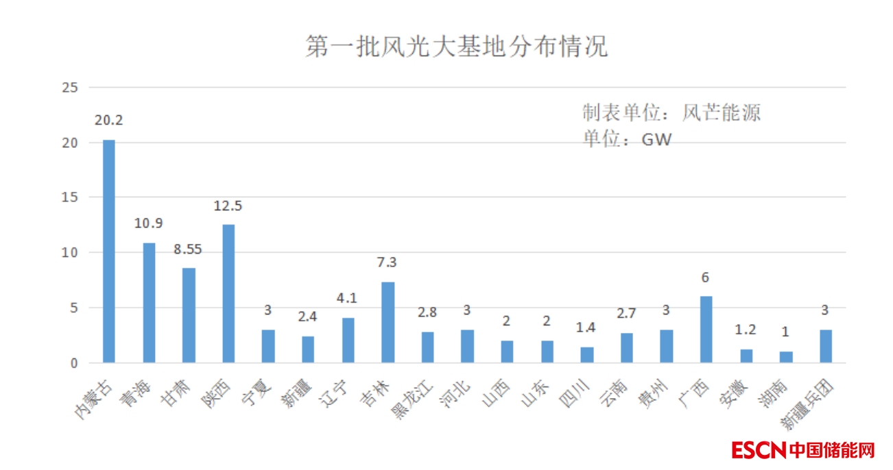 第二批大型風(fēng)電光伏基地清單約4200萬千瓦,涉及內(nèi)蒙古、寧夏、新疆、青海、甘肅等省區(qū),土地類型均屬于沙漠、戈壁、荒漠地區(qū)。