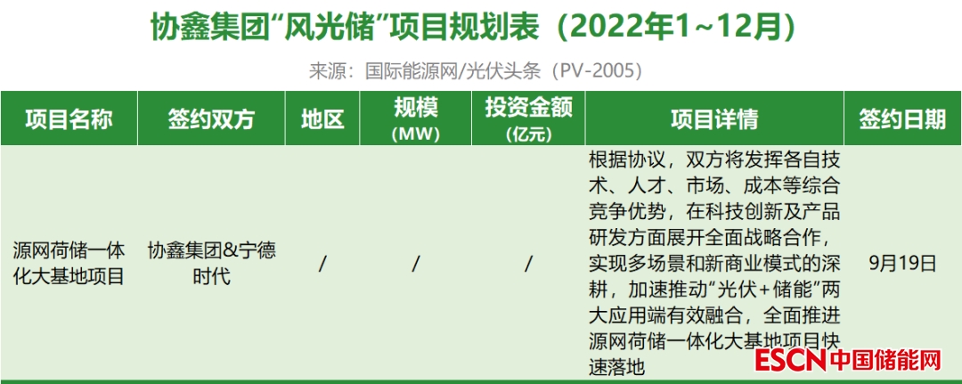 截至2022年12月31日,協(xié)鑫集團共簽約(規(guī)劃)1個風光儲項目,該項目僅簽署了合作協(xié)議。