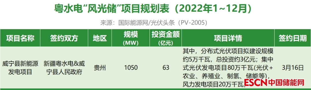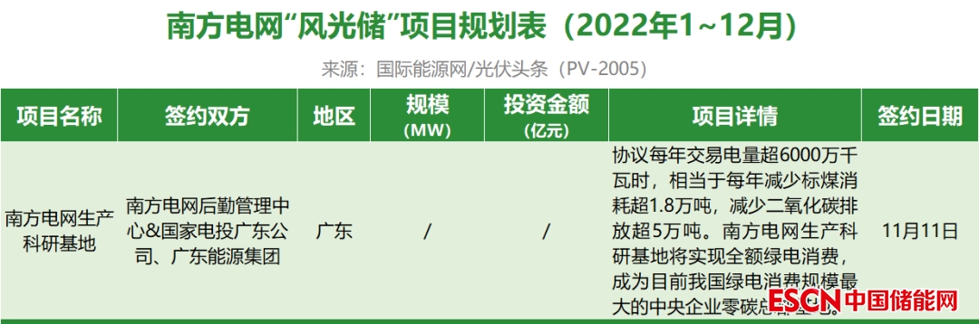 截至2022年12月31日,南方電網(wǎng)共簽約(規(guī)劃)1個風光儲項目。
