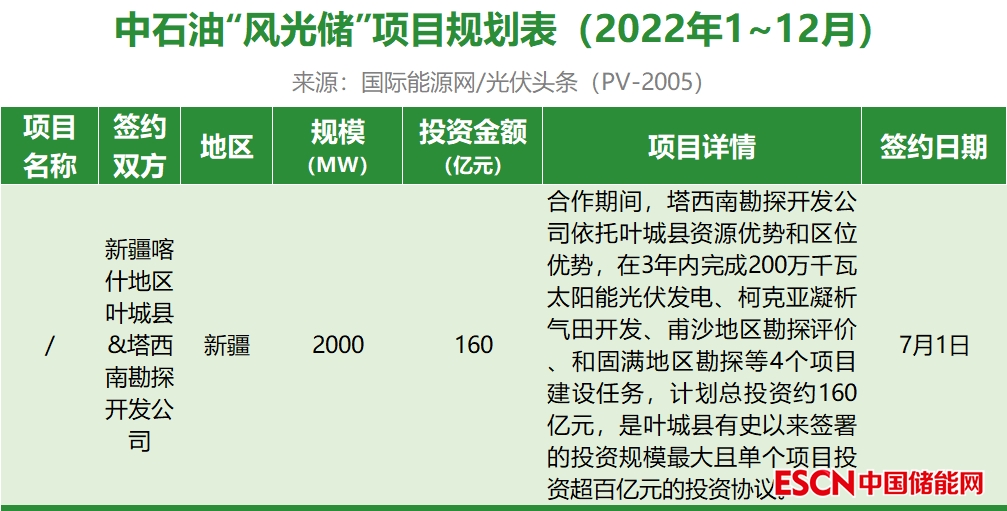 截至2022年12月31日,中石油共簽約(規(guī)劃)1個風光儲項目,明確規(guī)模共計2GW,明確投資金額160億元。