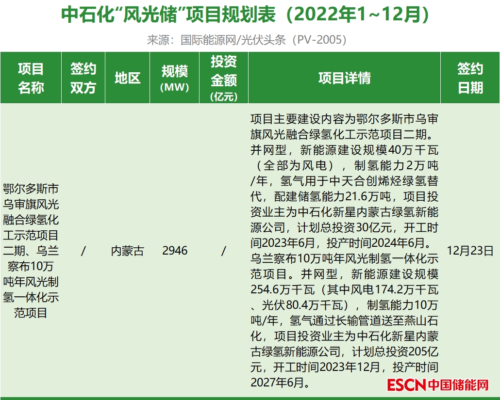 截至2022年12月31日,中石化共簽約(規(guī)劃)1個風光儲項目,明確規(guī)模共計2.946GW。