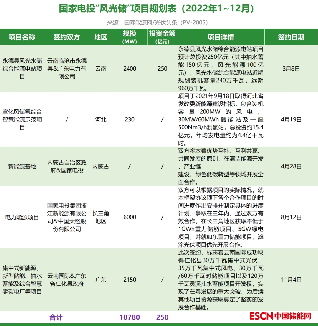 截至2022年12月31日,國家電投共簽約(規(guī)劃)5個風光儲項目,明確規(guī)模共計10.78GW,有1個項目明確投資金額為250億元。