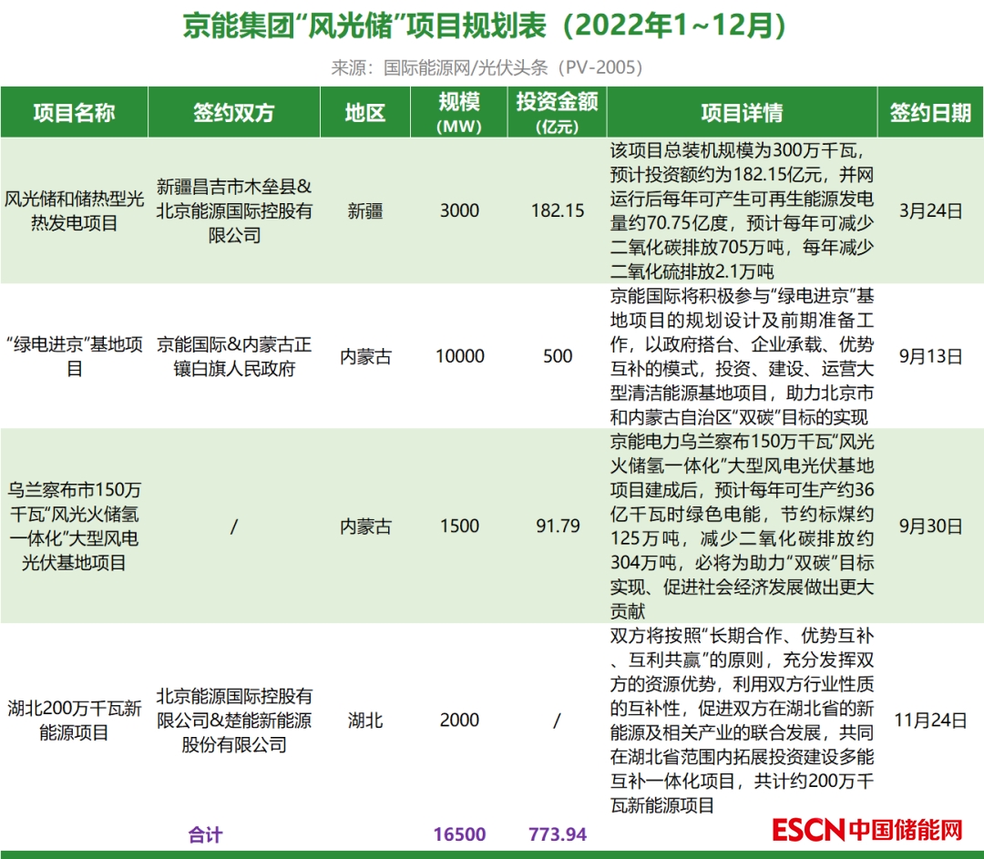 截至2022年12月31日,京能集團共簽約(規(guī)劃)4個風光儲項目,項目規(guī)模16.5GW,投資金額773.94億元。