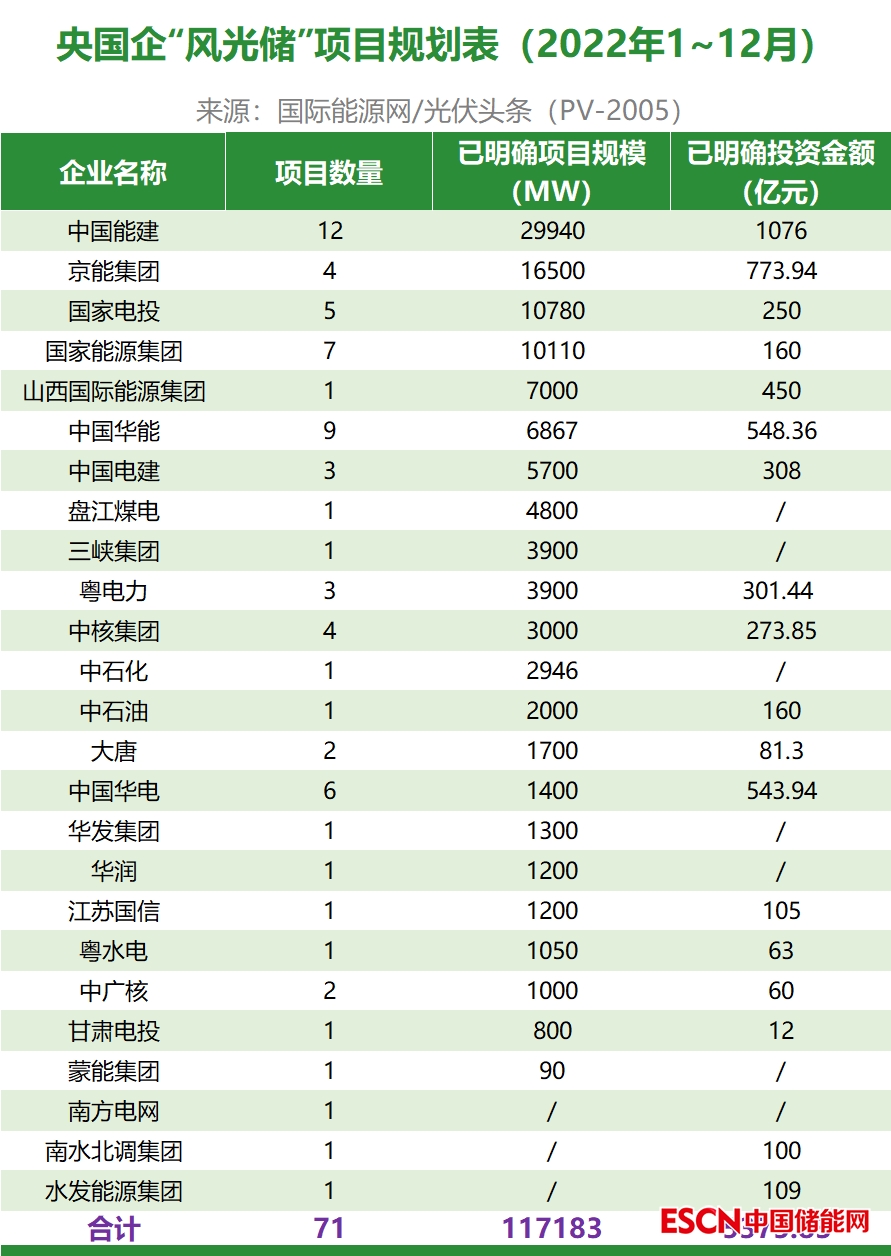 截至2022年12月31日,國家能源集團共簽約(規(guī)劃)7個風光儲項目,明確項目規(guī)模共計10.11GW,有1個項目明確投資金額160億元。