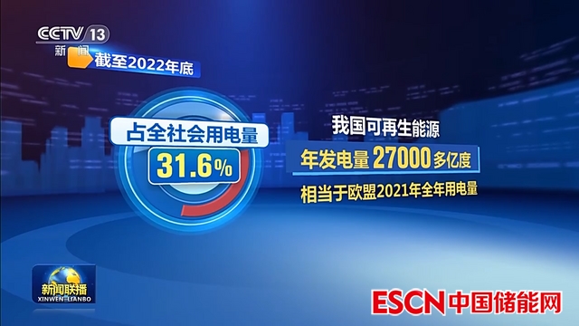 中國儲能網(wǎng)訊:截至2022年底,我國可再生能源裝機(jī)達(dá)到了12.13億千瓦,超過全國煤電裝機(jī),占全國發(fā)電總裝機(jī)的47.3%,年發(fā)電量27000多億度,占全社會用電量的31.6%,相當(dāng)于歐盟2021年全年用電量。隨之而來的將是電力全系統(tǒng)的調(diào)節(jié)問題越來越突出,因此新型儲能將迎來大發(fā)展機(jī)遇期!央視新聞客戶端消息(新聞聯(lián)播):習(xí)近平總書記指出,要把促進(jìn)新能源和清潔能源發(fā)展放在更加突出的位置。2022年,隨著能源革命深入推進(jìn),我國可再生能源發(fā)展實(shí)現(xiàn)新突破,裝機(jī)總量歷史性超過全國煤電裝機(jī),進(jìn)入大規(guī)模高質(zhì)量躍升發(fā)展新階段。