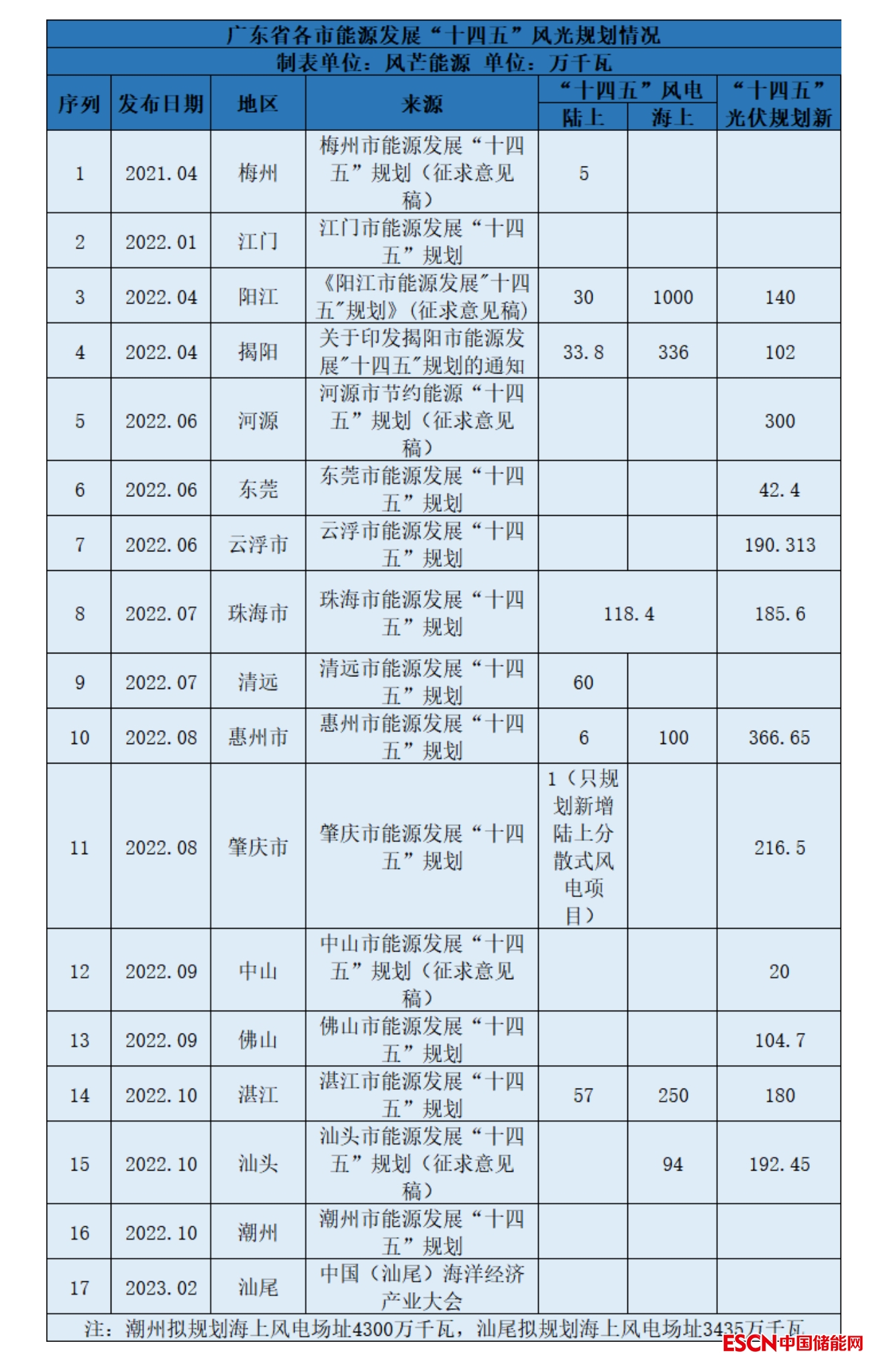 風(fēng)芒能源根據(jù)公開信息不完全統(tǒng)計(jì),截至目前,廣東共有17個(gè)市發(fā)布了“十四五”能源發(fā)展規(guī)劃。根據(jù)梳理,“十四五”期間,僅潮州、汕尾兩市規(guī)劃海上風(fēng)電7700萬(wàn)千瓦,廣東17個(gè)市共新增風(fēng)電裝機(jī)容量超2000萬(wàn)千瓦。