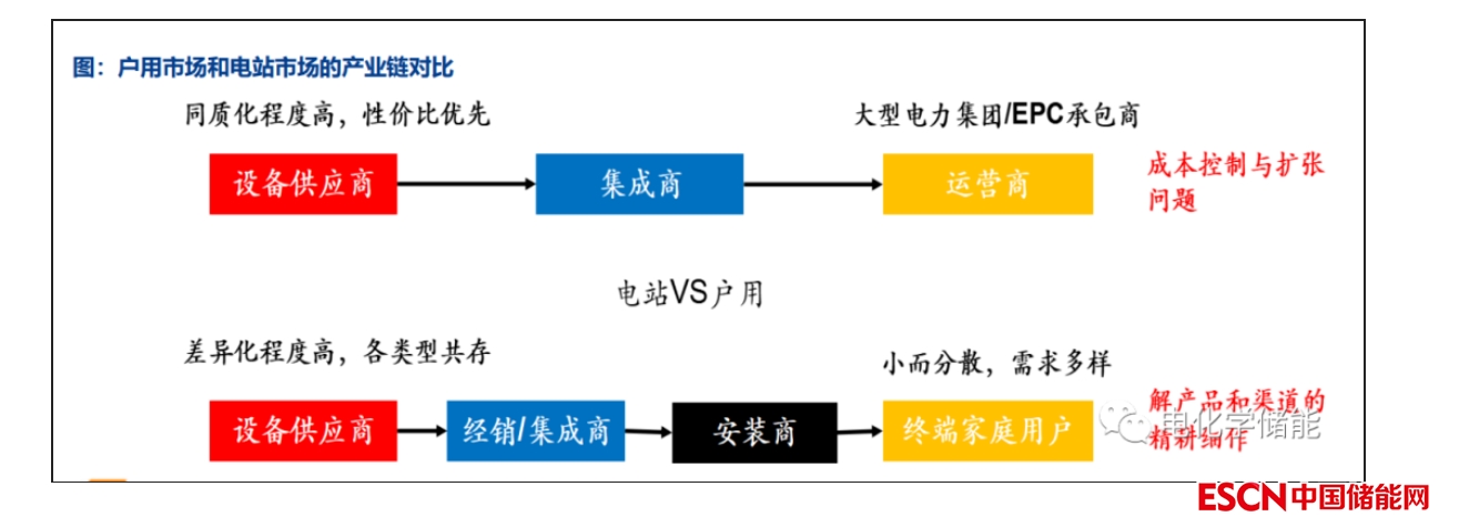 戶儲:相較于電站市場以規(guī)模及成本為核心的同質(zhì)化競爭,戶用市場的競爭壁壘主要體現(xiàn)在產(chǎn)品與渠道的長期精耕細(xì)作,其競爭格局在較長時(shí)間內(nèi)或都將呈現(xiàn)百花齊放的態(tài)勢。