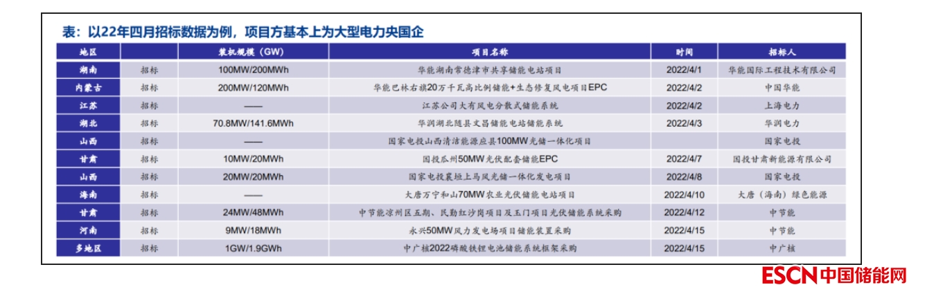 在儲能領(lǐng)域,客戶資源較固定,下游大型電力央國企話語權(quán)大。下游客戶集中,品牌優(yōu)勢將越來越凸顯。國內(nèi)十四五期間新能源項(xiàng)目大多數(shù)由五大四小等大型電力央國企建設(shè),儲能項(xiàng)目大部分亦由他們配套招標(biāo)建設(shè),疊加南網(wǎng)和國網(wǎng),大儲項(xiàng)目下游業(yè)主較為固定。