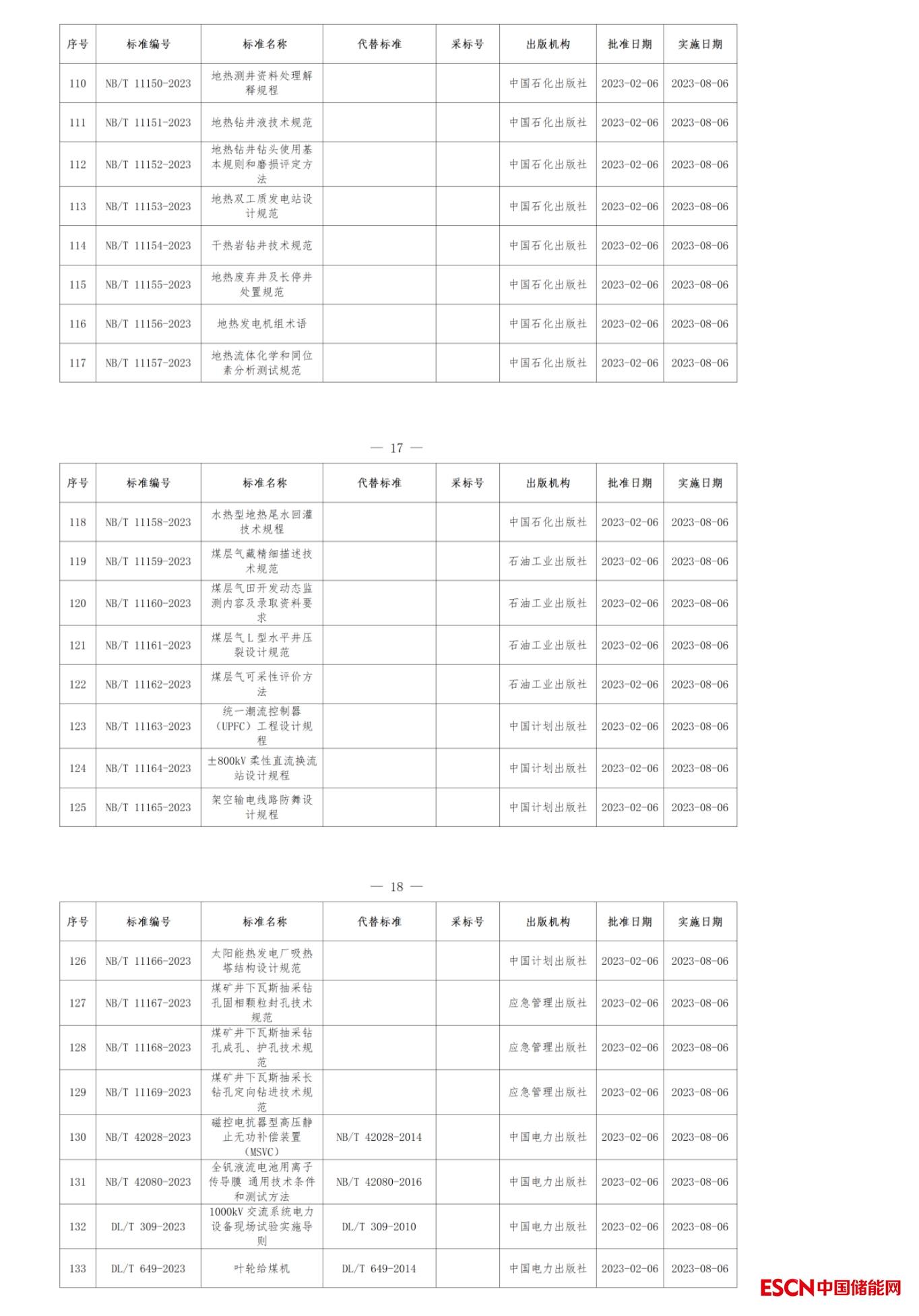 中國儲能網(wǎng)訊:2月17日,國家能源局批準(zhǔn)《高壓直流保護測試設(shè)備技術(shù)規(guī)范》等168項能源行業(yè)標(biāo)準(zhǔn),其中涉及11項儲能、電池行業(yè)標(biāo)準(zhǔn),包括《全釩液流電池用電堆技術(shù)條件》、《全釩液流電池用電解液回收要求》、《鋅基液流電池系統(tǒng)測試方法》、《鋅基液流電池安全要求》、《鋅基液流電池安裝技術(shù)規(guī)范》、《鐵鉻液流電池用電解液技術(shù)規(guī)范》、《風(fēng)光水火儲多能互補發(fā)電工程規(guī)劃報告編制規(guī)程》、《可逆式抽水蓄能機組啟動調(diào)試導(dǎo)則》、《電化學(xué)儲能電站可行性研究報告內(nèi)容深度規(guī)定》、《電化學(xué)儲能電站初步設(shè)計內(nèi)容深度規(guī)定》、《電化學(xué)儲能電站施工圖設(shè)計內(nèi)容深度規(guī)定》等。