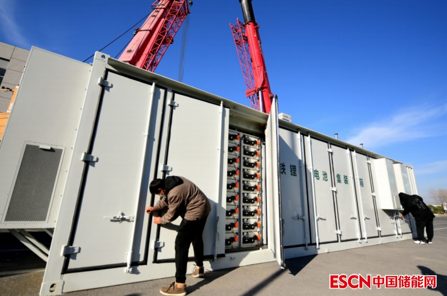 2022年12月,江蘇南通的一個工業(yè)園區(qū)里,工作人員正將4個儲能電站裝車。上述儲能設(shè)備將被發(fā)往新疆,用于配套光伏發(fā)電站。