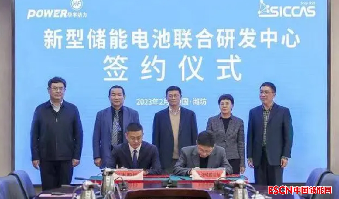 中國儲能網(wǎng)訊:2月22日,新型儲能電池聯(lián)合研發(fā)中心簽約儀式在濰坊高新區(qū)舉行。該中心由華豐動力股份有限公司與中國科學(xué)院上海硅酸鹽研究所合作設(shè)立,將充分利用雙方資源在新型電池材料及儲能電池等重點(diǎn)領(lǐng)域開展合作,推動新型儲能電池的研究開發(fā)、材料中試及后續(xù)的產(chǎn)業(yè)化生產(chǎn),最終實(shí)現(xiàn)新型儲能電池的產(chǎn)業(yè)化落地。