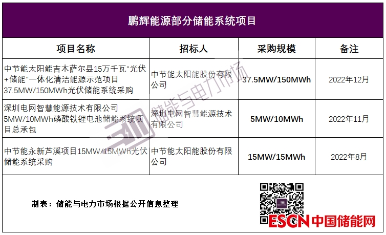 作為一家成立20余年的老牌上市儲能企業(yè),鵬輝發(fā)揮在電池產(chǎn)業(yè)鏈上廣泛的生態(tài)合作伙伴實現(xiàn)了向產(chǎn)業(yè)鏈下游的拓展。鵬輝通過與天合合資建廠、與中節(jié)能等客戶合作,參與儲能系統(tǒng)的招投標,陸續(xù)中標儲能系統(tǒng)采購項目。
