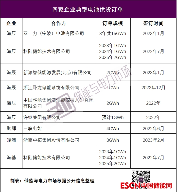 海辰2022年訂單量超4.7GWh,出貨量達5GWh,僅2023年1-2月的訂單量就已超過20GWh。除了與許繼、南網(wǎng)電力科技等達成了多次合作外,海辰也與新源智儲、雙一力、宜春科陸等新建立了合作關(guān)系。