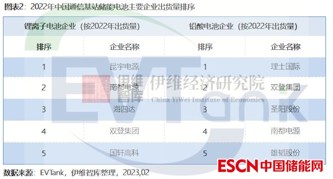 從通信基站儲能用鉛酸電池來看,目前的主要參與者包括理士國際,南都電源、雄韜股份、雙登集團、圣陽股份等,在通信基站儲能用鋰離子電池領域,除了之前的鉛酸電池企業(yè)轉(zhuǎn)型提供基站用鋰離子電池產(chǎn)品之外,包括昆宇電源、海四達、國軒高科、寧德時代、比亞迪、億緯鋰能和ATL等專注于鋰離子電池企業(yè)也在積極開拓通信基站儲能領域。EVTank數(shù)據(jù)顯示,2022年理士國際和昆宇電源分別在通信基站儲能用鉛酸電池和鋰離子電池領域排名第一。
