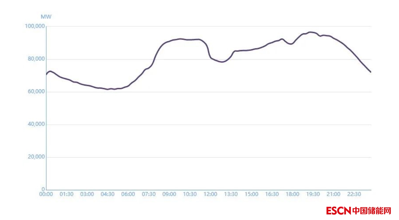 單純從用電負(fù)荷來看,中午雖然不是全天負(fù)荷最高的時(shí)段,但也不是全天負(fù)荷最低的,屬于全天負(fù)荷較高時(shí)段。下圖為某省春季某日全省用電負(fù)荷情況: