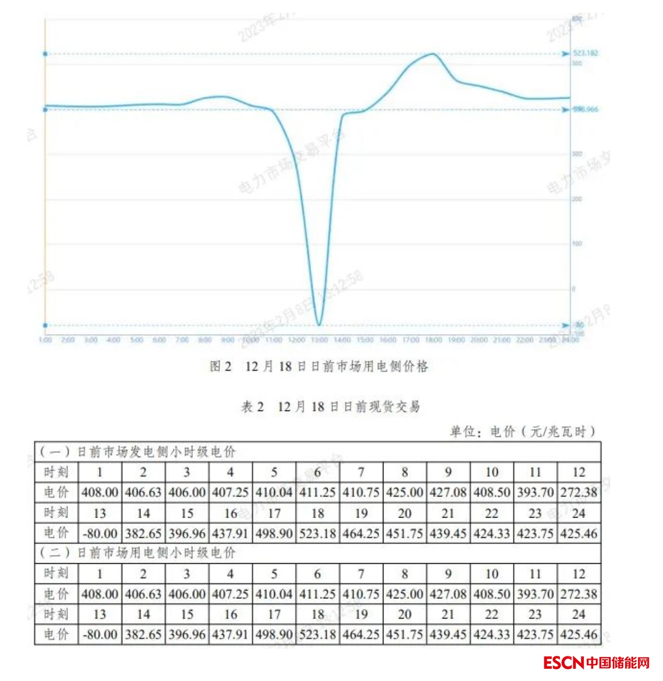 以上省(區(qū))均為光伏裝機(jī)較高的?。▍^(qū)),新疆在14:00-16:00電價(jià)低至0.1634元/千瓦時(shí),這樣的低價(jià)很難覆蓋光伏發(fā)電建設(shè)成本。此外,根據(jù)公開信息,筆者查詢了個(gè)別省份現(xiàn)貨市場(chǎng)電價(jià),其中山東省現(xiàn)貨日前電價(jià)出現(xiàn)了中午超低價(jià)甚至達(dá)到-80元/兆瓦時(shí)的下限價(jià)格,如下圖表: