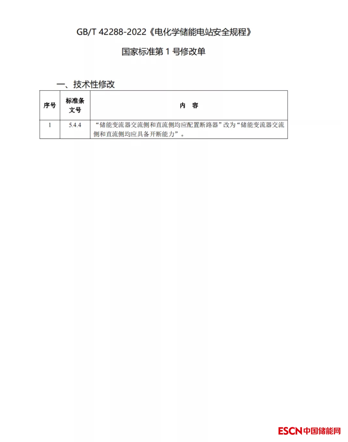 中國(guó)儲(chǔ)能網(wǎng)訊:近日,國(guó)家標(biāo)準(zhǔn)《電化學(xué)儲(chǔ)能電站安全規(guī)程《第1號(hào)修改單》》發(fā)布,修改內(nèi)容為:“儲(chǔ)能變流器交流側(cè)和直流側(cè)均應(yīng)配置斷路器”改為“儲(chǔ)能變流器交流側(cè)和直流側(cè)均應(yīng)具備開(kāi)斷能力”。據(jù)了解,此次修改理由為(1)工商業(yè)儲(chǔ)能柜、戶(hù)用儲(chǔ)能等小規(guī)模的儲(chǔ)能系統(tǒng),可在交流側(cè)和直流側(cè)配置斷路器;(2)針對(duì)儲(chǔ)能電站,儲(chǔ)能變流器交流側(cè)配置斷路器是當(dāng)前行業(yè)的常用做法,但集中式儲(chǔ)能越來(lái)越廣泛應(yīng)用,由于直流側(cè)電池簇并聯(lián)數(shù)量多,短路電流水平超過(guò)現(xiàn)有直流斷路器的開(kāi)斷能力,行業(yè)一般采用熔斷器作為短路電流保護(hù)。兼顧以上兩條,建議將 5.4.4 條由“儲(chǔ)能變流器交流側(cè)和直流側(cè)均應(yīng)配置斷路器”改為“儲(chǔ)能變流器交流側(cè)和直流側(cè)均應(yīng)具備開(kāi)斷能力”。