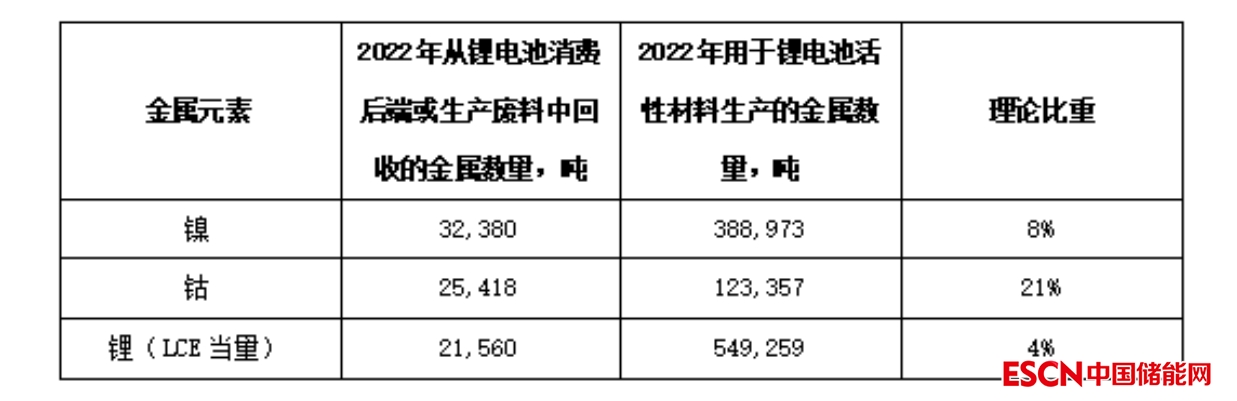 表、2022年國內(nèi)鎳、鈷、鋰再生料比重