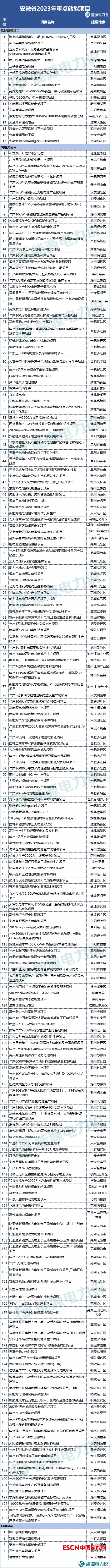 安徽省2023年重點儲能項目清單于2月20日發(fā)布,儲能相關(guān)項目218個。