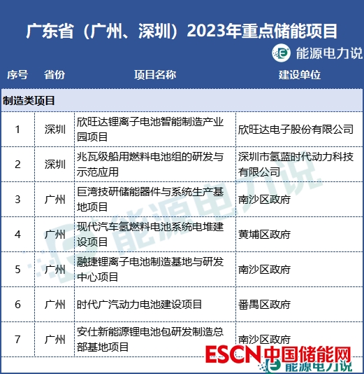 廣東省廣州、深圳兩個地市已發(fā)布2023年重點儲能項目。