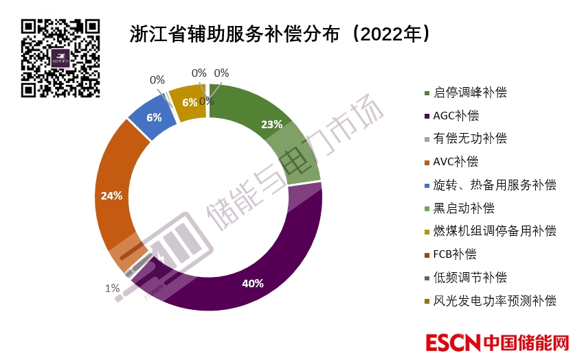 2022年浙江省的輔助服務(wù)市場運行數(shù)據(jù)顯示,浙江省全年輔助服務(wù)補償額為56740萬元,其中AGC調(diào)頻輔助服務(wù)補償總量為22409萬元,占比接近40%,是最主要的輔助服務(wù)形式。