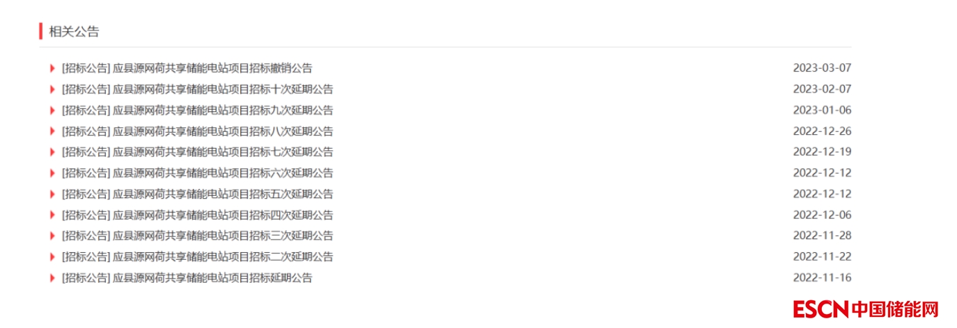 據(jù)了解,該項(xiàng)目規(guī)模為300MW/300MWh,于2022年10月26日首次發(fā)表招標(biāo)公告,先后十次延期。直至3月7日,發(fā)布消息撤銷招標(biāo)公告。招標(biāo)方為應(yīng)縣福光儲(chǔ)能有限責(zé)任公司(簡(jiǎn)稱“應(yīng)縣福光”),應(yīng)縣福光由山西福光新能源集團(tuán)有限責(zé)任公司(簡(jiǎn)稱“山西福光”)控股。