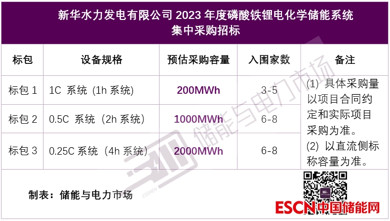 中國儲能網(wǎng)訊:3月21日,新華水力發(fā)電有限公司發(fā)布2023年度磷酸鐵鋰電化學儲能系統(tǒng)集中采購招標公告。儲能系統(tǒng)采購規(guī)模預計達1.2GW/3.2GWh,具體包括1小時儲能系統(tǒng)200MWh、2小時儲能系統(tǒng)1GWh和4小時儲能系統(tǒng)2GWh。