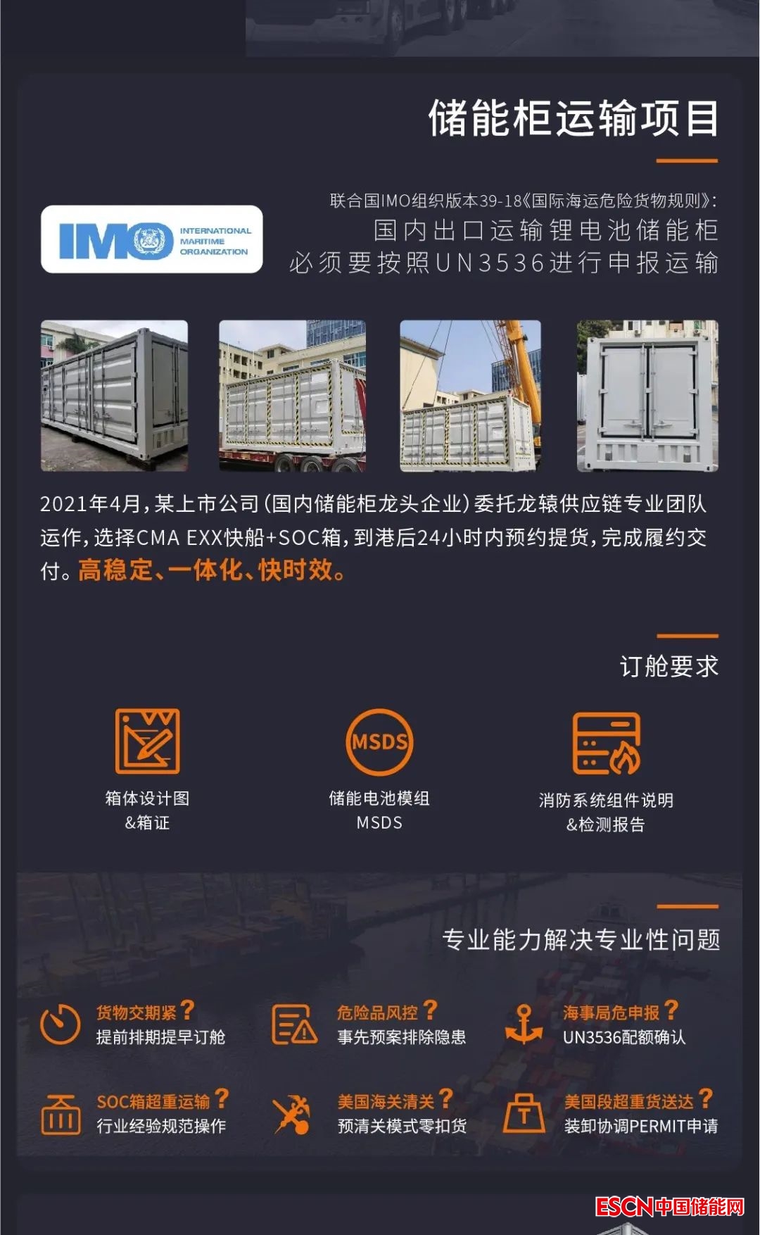 2021年是中國儲能出海爆發(fā)式增長的元年,龍轅供應(yīng)鏈在2021年5月交付了美國東北電網(wǎng)的儲能項(xiàng)目【戳鏈接:超尺寸貨物運(yùn)用框架箱運(yùn)輸,龍轅再現(xiàn)——硅谷鋼鐵俠埃隆馬斯克背后的搬運(yùn)工】,成為物流解決方案“集成一體化”供應(yīng)商,依托美國自營海外操作團(tuán)隊+自營海外倉+自營車隊的一體化服務(wù)優(yōu)勢,陪伴中國儲能集成商一起成長,從2021年的運(yùn)力短缺到2022年原料上漲導(dǎo)致的供應(yīng)鏈供貨延遲等,我們與中國制造一起共克時艱,每個項(xiàng)目的履約交付都讓我們累積了儲能系統(tǒng)物流項(xiàng)目管理的經(jīng)驗(yàn),也讓我們看到了中國儲能技術(shù)不斷迭代下的海外市場機(jī)會。