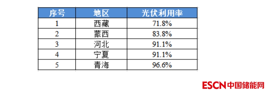 2023年1月,光伏利用率最低的五個地區(qū)分別為: