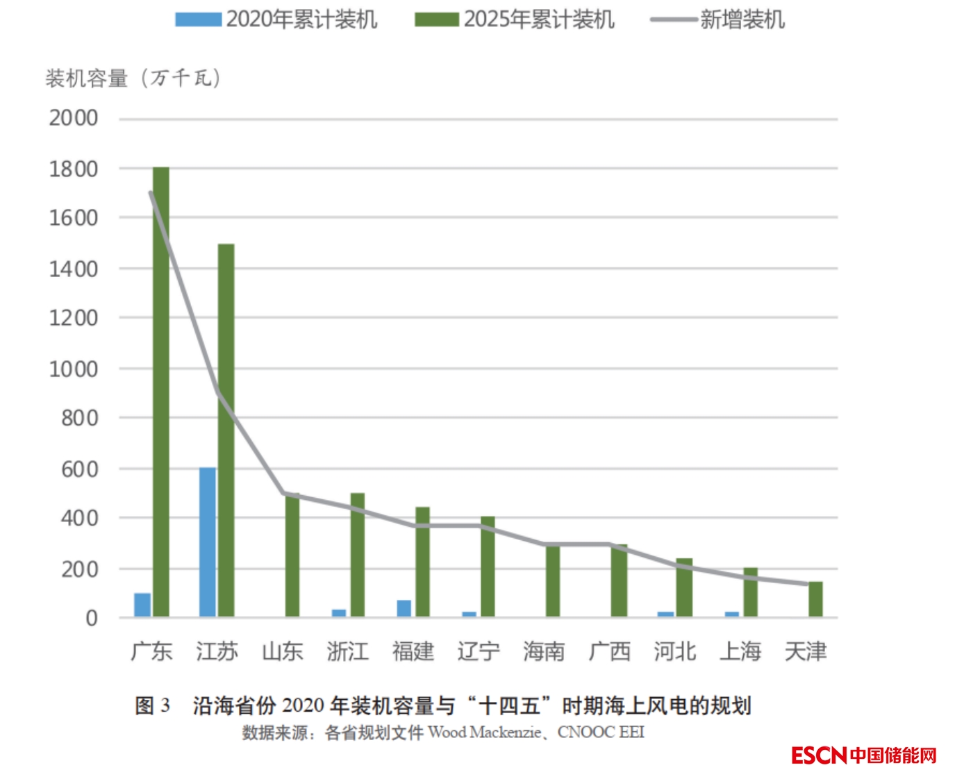 各地相繼發(fā)布省級能源發(fā)展“十四五”規(guī)劃、可再生能源發(fā)展“十四五”規(guī)劃等政策文件,“十四五”期間各省規(guī)劃新增裝機(jī)總量超5500 萬千瓦。行業(yè)對海上風(fēng)電的發(fā)展持樂觀預(yù)期,預(yù)計(jì)到 2025 年累計(jì)裝機(jī)容量有望達(dá)到1 億千瓦 。廣東規(guī)劃新增裝機(jī)容量達(dá) 1700萬千瓦,占總規(guī)劃新增裝機(jī)容量的近三分之一。除近海省管海域項(xiàng)目外,廣東、福建、浙江、江蘇、山東、天津等加快國管海域深遠(yuǎn)海項(xiàng)目開發(fā)。