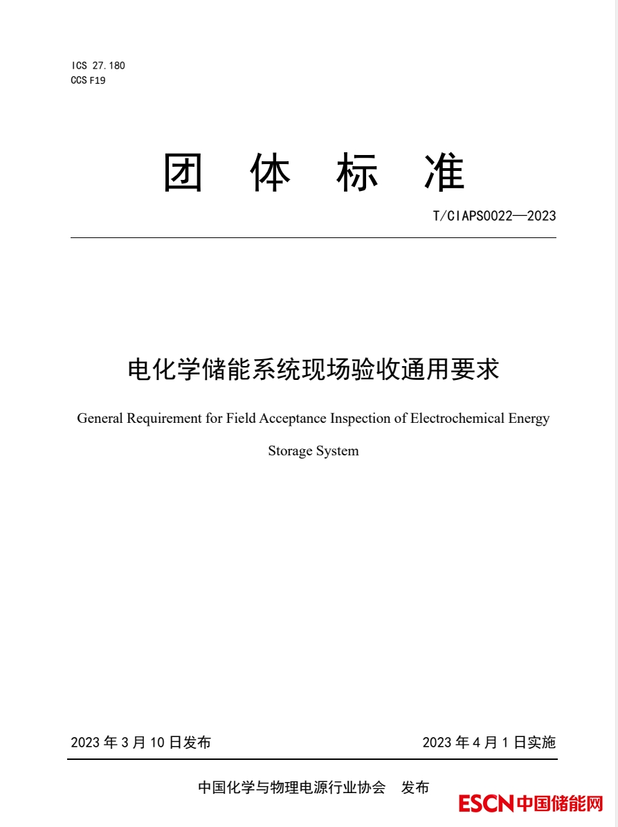 此次團(tuán)體標(biāo)準(zhǔn)規(guī)定了電化學(xué)儲能系統(tǒng)現(xiàn)場驗(yàn)收的通用要求,并從“范圍、規(guī)范性引用文件、術(shù)語和定義、環(huán)境條件、電化學(xué)儲能系統(tǒng)現(xiàn)場驗(yàn)收要求、電化學(xué)儲能系統(tǒng)現(xiàn)場驗(yàn)收檢驗(yàn)方法”六個(gè)維度進(jìn)行規(guī)范說明。