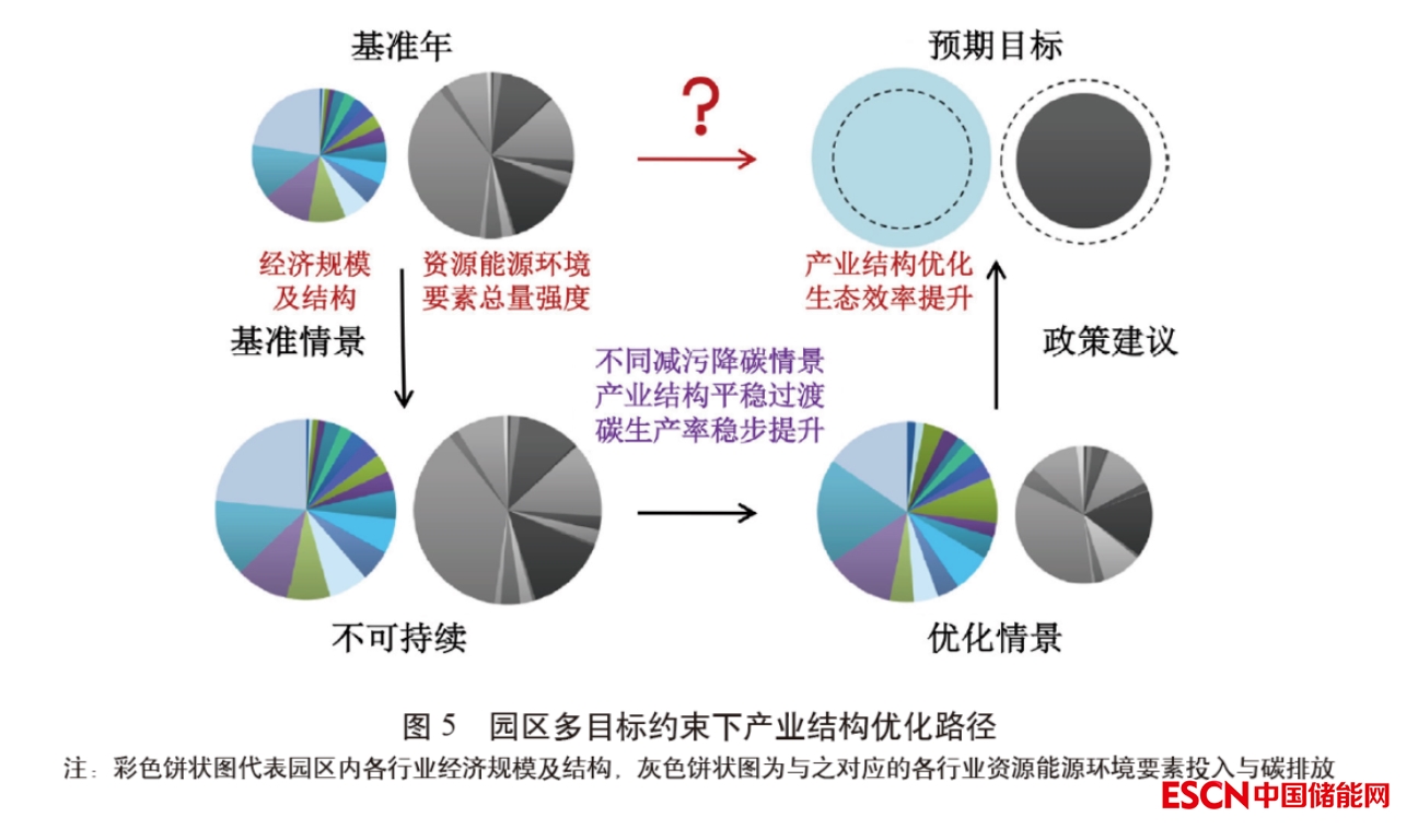 “以碳優(yōu)產(chǎn)”指將以產(chǎn)業(yè)預見的碳排放作為園區(qū)碳總量基準配額,在此基礎上統(tǒng)籌工業(yè)總產(chǎn)值與增加值達預期增長、資源能源利用率提升等目標,反饋優(yōu)化園區(qū)產(chǎn)業(yè)結構、提升其存量與增量行業(yè)碳生產(chǎn)率,并設置未來存量產(chǎn)業(yè)效率提升目標與新增產(chǎn)業(yè)效率準入門檻,科學制定園區(qū)碳達峰路線圖,以實現(xiàn)園區(qū)碳排放與經(jīng)濟發(fā)展脫鉤。