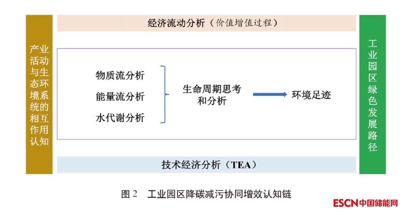 其次要沿降碳減污協(xié)同增效認知鏈識別園區(qū)邊界統(tǒng)一原則下的物質、能量流動與損失,精準測算直接與間接碳排放。在企業(yè)微觀層面,運用元素流與能量流分析方法研究園區(qū)典型單元過程,理清園區(qū)多產(chǎn)品、多要素、多層級的物質、能量代謝結構、路徑、過程等特征,建立單元過程間多流融合的碳排放測算方法,揭示節(jié)點處工業(yè)企業(yè)元素- 能量- 碳流動轉化規(guī)律。在園區(qū)中觀層面,運用物質流- 能量- 水流動分析方法,集成園區(qū)內(nèi)多企業(yè)、多過程(包括基礎設施與公用工程等)的物質、能量、碳流轉換關系,面向園區(qū)生態(tài)效率持續(xù)提升目標,解析園區(qū)企業(yè)間、基礎設施與園區(qū)整體的物質投入、經(jīng)濟產(chǎn)出、資源能源消耗與碳排放的關聯(lián)關系與互動特征。在區(qū)域宏觀層面,從園區(qū)嵌套的供應鏈與產(chǎn)業(yè)鏈上下游視角,分析園區(qū)與周邊近遠程區(qū)域的物質能量交互作用,進而甄別沿產(chǎn)業(yè)鏈隱含的碳流動路徑。耦合全生命周期分析方法,統(tǒng)籌微觀- 中觀- 宏觀層面園區(qū)物質能量流動特征,分別以企業(yè)、園區(qū)、產(chǎn)業(yè)作為節(jié)點,研究多企業(yè)、多區(qū)域、多產(chǎn)業(yè)的碳足跡融合方法,支撐園區(qū)碳足跡量化表征。對關鍵降碳減污措施開展技術經(jīng)濟分析,針對性提出園區(qū)靶向減排措施,調(diào)控園區(qū)經(jīng)濟活動的物質能量流動過程,構建園區(qū)綠色低碳發(fā)展路徑。