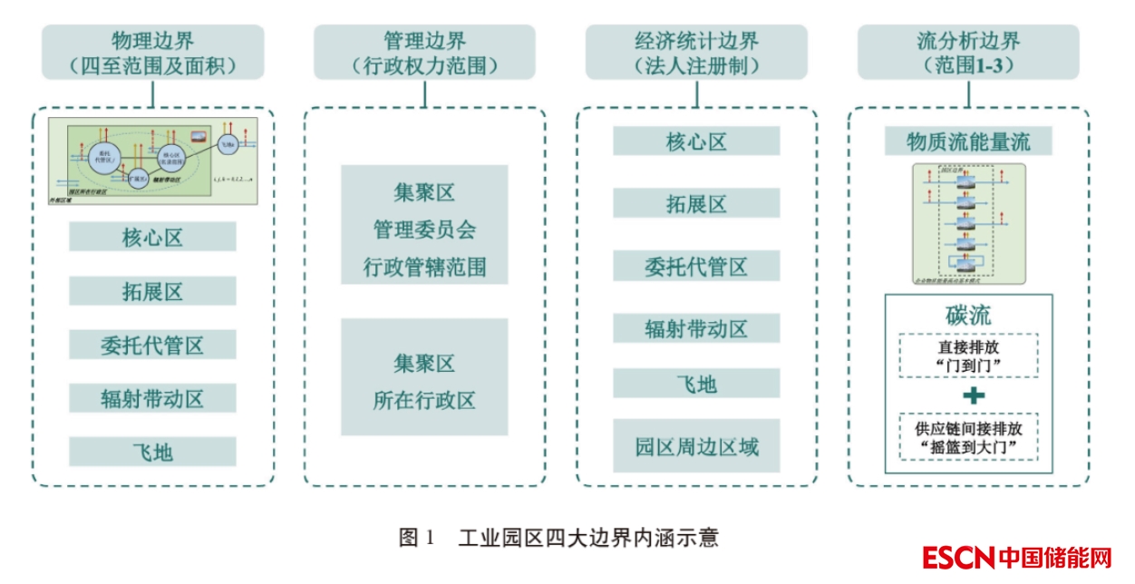 園區(qū)內(nèi)組成、結構、過程復雜,主要表現(xiàn)在四個方面:一是精準核算園區(qū)碳排放需明晰四大邊界;二是園區(qū)內(nèi)多利益相關方集中,需明確劃定降碳減污責任;三是需自下而上分析更高精度的園區(qū)物質、能量流動的結構路徑;四是降碳減污系統(tǒng)優(yōu)化需要統(tǒng)籌供應鏈、產(chǎn)業(yè)鏈、價值鏈。其中邊界問題又是摸清園區(qū)碳排放家底、量化碳減排潛力,并制定碳達峰路線圖的關鍵基礎,但實踐中又往往難以清晰界定,導致很多園區(qū)碳排放底數(shù)不明,不同園區(qū)間低碳發(fā)展水平難以比較和精準對標分析。