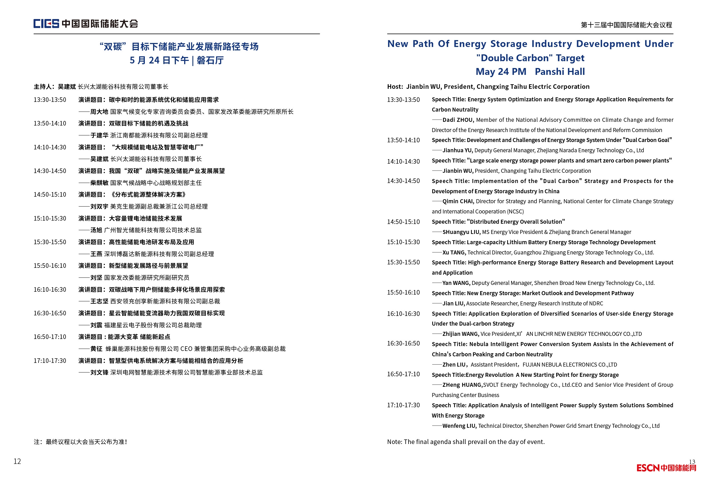 本屆大會將設(shè)置安排:大會開幕式暨院士/專家主題報告、“雙碳”目標(biāo)下 儲能產(chǎn)業(yè)發(fā)展新路徑專場、新型電力系統(tǒng)與儲能系統(tǒng)整體解決方案專場、儲能安全與系統(tǒng)集成專場、共享儲能專場、新型儲能系統(tǒng)集成解決方案專場、用戶側(cè)儲能與虛擬電廠專場、儲能安全與消防系統(tǒng)專場、長時儲能技術(shù)及應(yīng)用專場、儲能檢測、認(rèn)證與標(biāo)準(zhǔn)專場、鋰離子電池與儲能系統(tǒng)設(shè)計專場、智能微電網(wǎng)及分布式能源專場、儲能資本市場專場(上、下)、儲能與電力市場專場、中國西北儲能市場專場、溫控系統(tǒng)及電氣設(shè)備專場等 17個專場論壇。