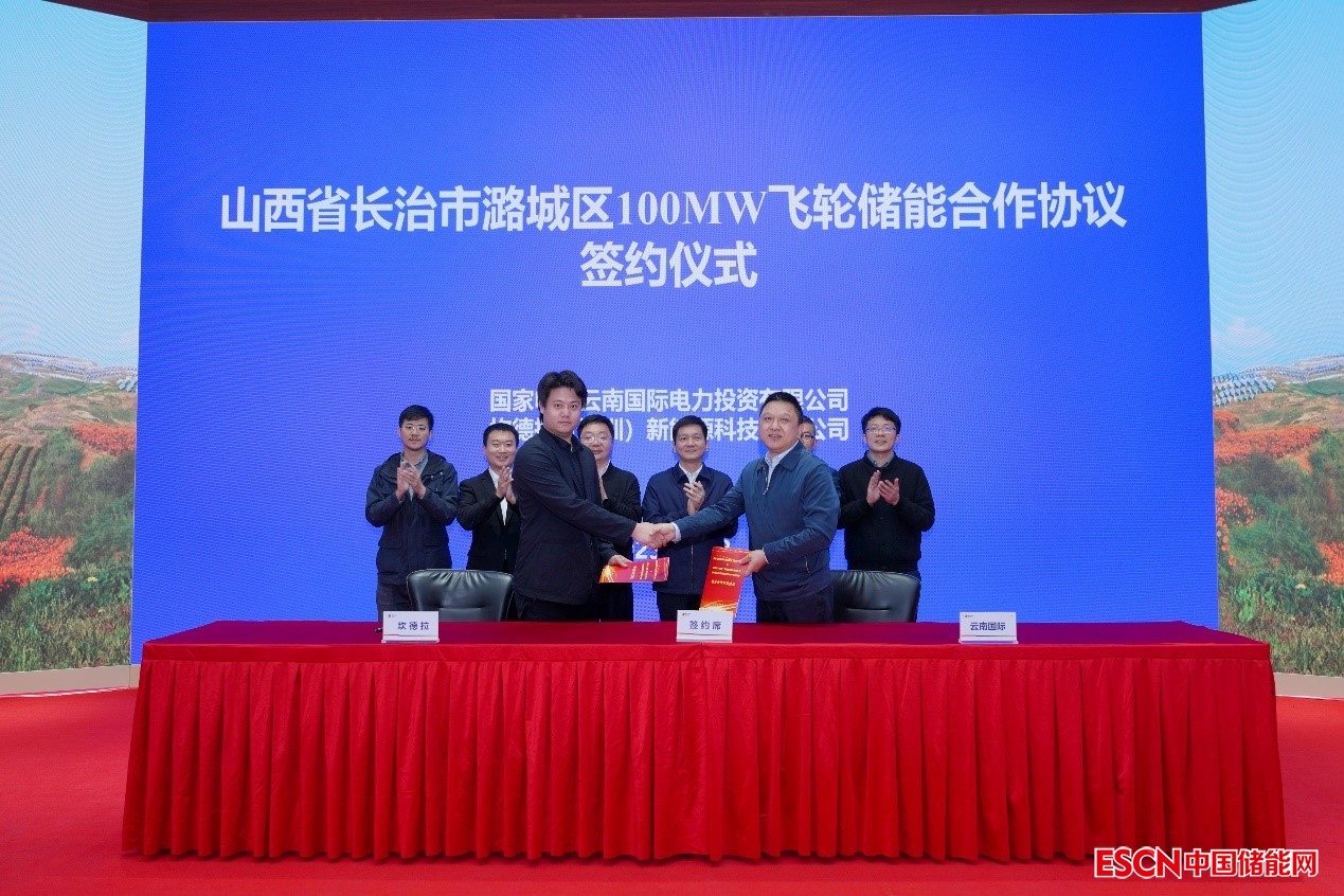 中國儲能網訊:3月28日,坎德拉新能源與國家電投云南國際電力投資有限公司(以下簡稱“云南國際”)在昆明簽署《山西省長治市潞城區(qū)100MW飛輪儲能項目合作開發(fā)協(xié)議》。云南國際黨委書記、董事長吳智泉見證簽約。